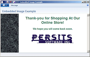 The following code sample sends a message containing two embedded images, one used for the body margin and the other embedded in the message body. The body text is read from a text file via the method AppendBodyFromFile described in the previous chapter.